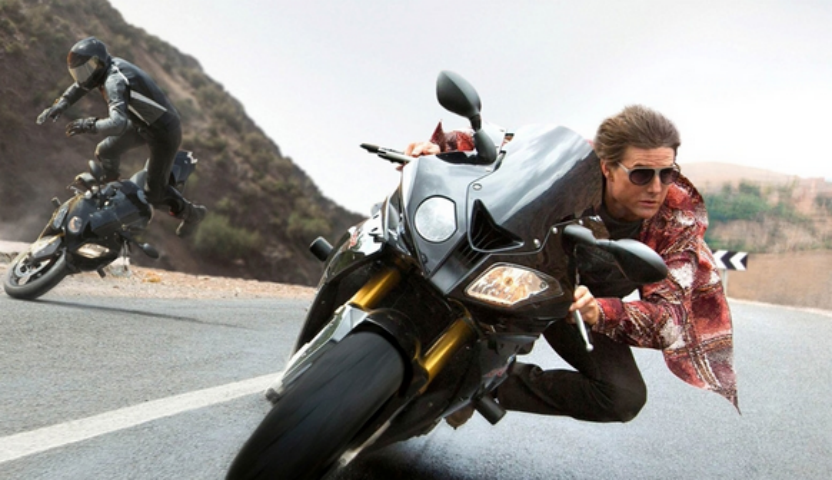 2015 年《碟中谍 5:神秘国度》有一段让人肾上腺素飙升的追逐戏:摩洛哥的盘山公路上,阿汤哥饰演的伊森·亨特骑着一辆摩托车,长发在风中狂舞,以接近100英里/小时(约160公里/小时)的速度在车流中左右穿梭。身后是紧追不舍的反派,前方是不断迎面驶来的车辆——他侧身压过一个弯道,车身几乎擦着地面呼啸而过。